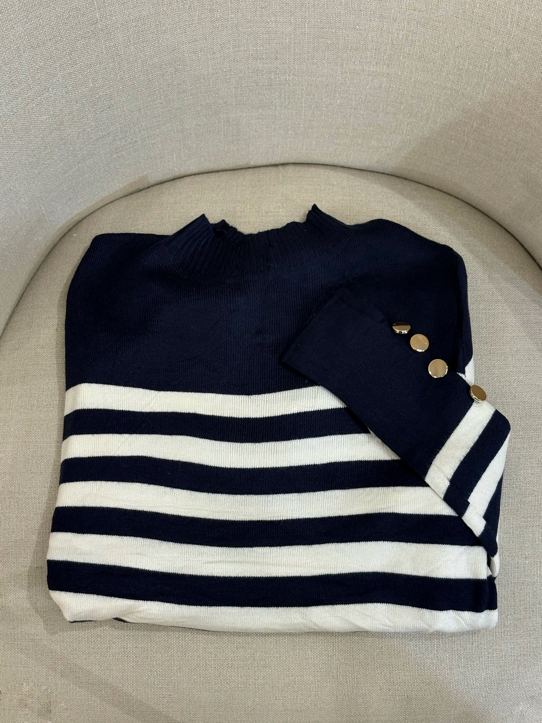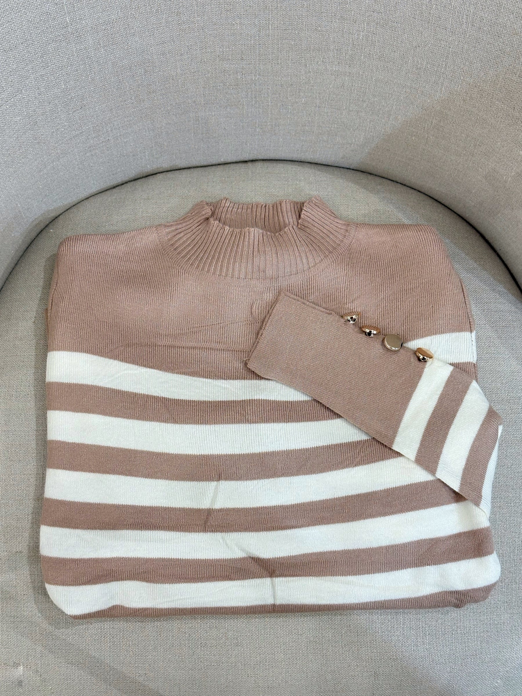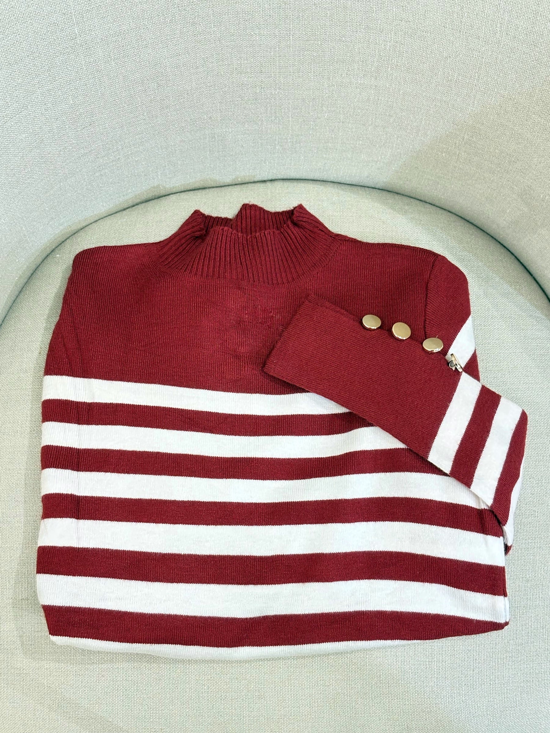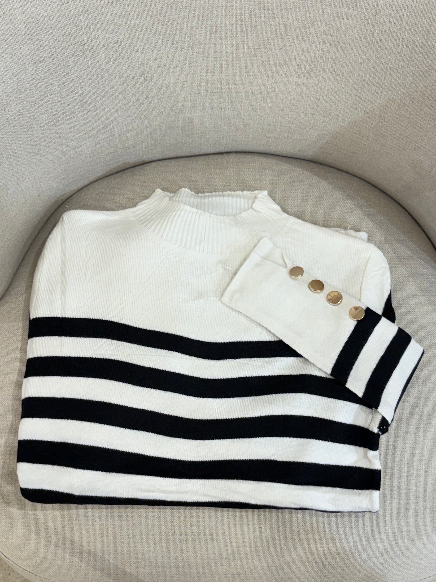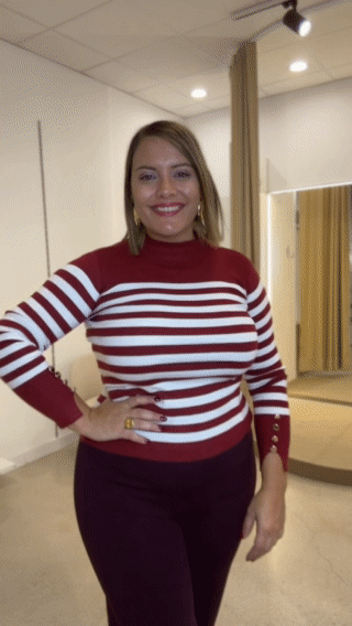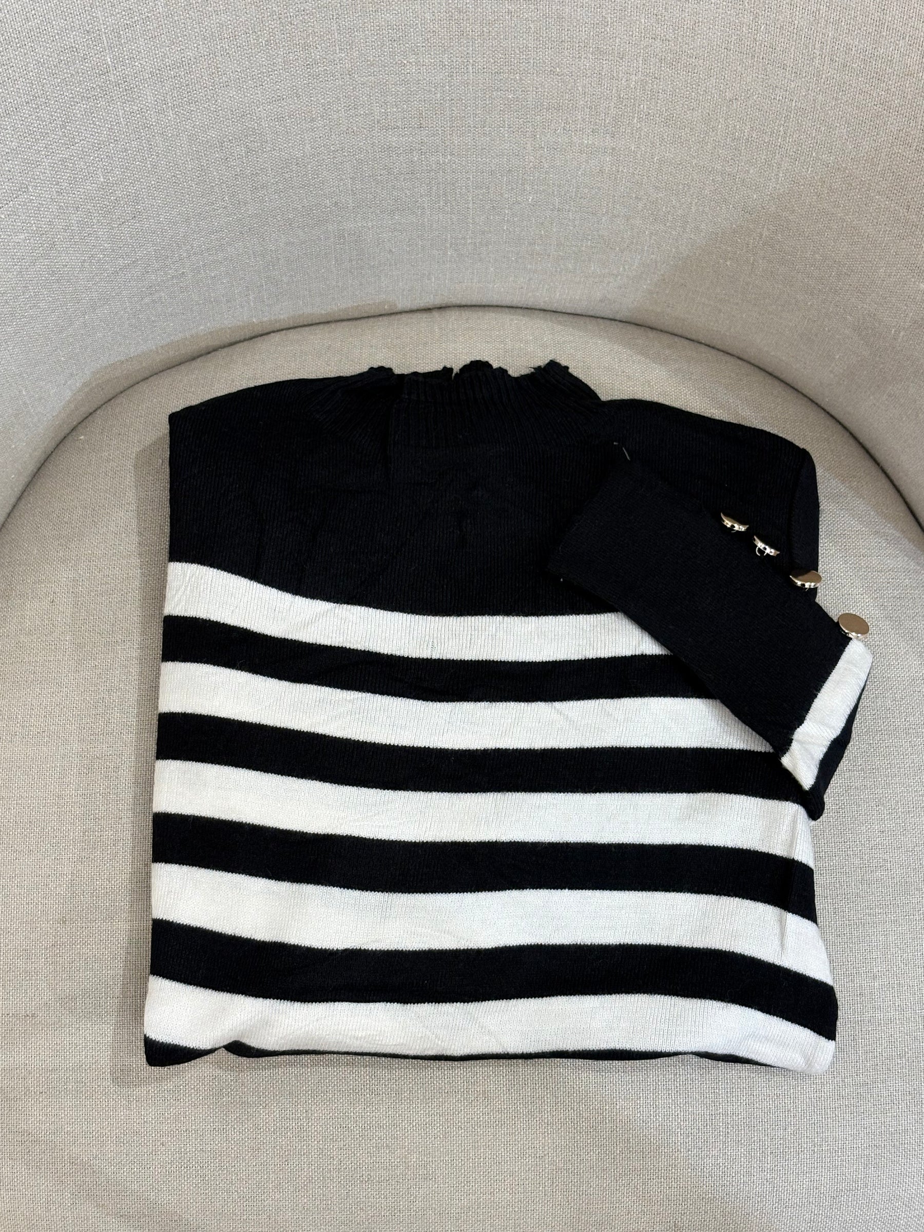 Jersey de canalé fino con rayas disponible en varios colores, detalles de botón dorado en el puño de la manga. Un básico para tu armario.