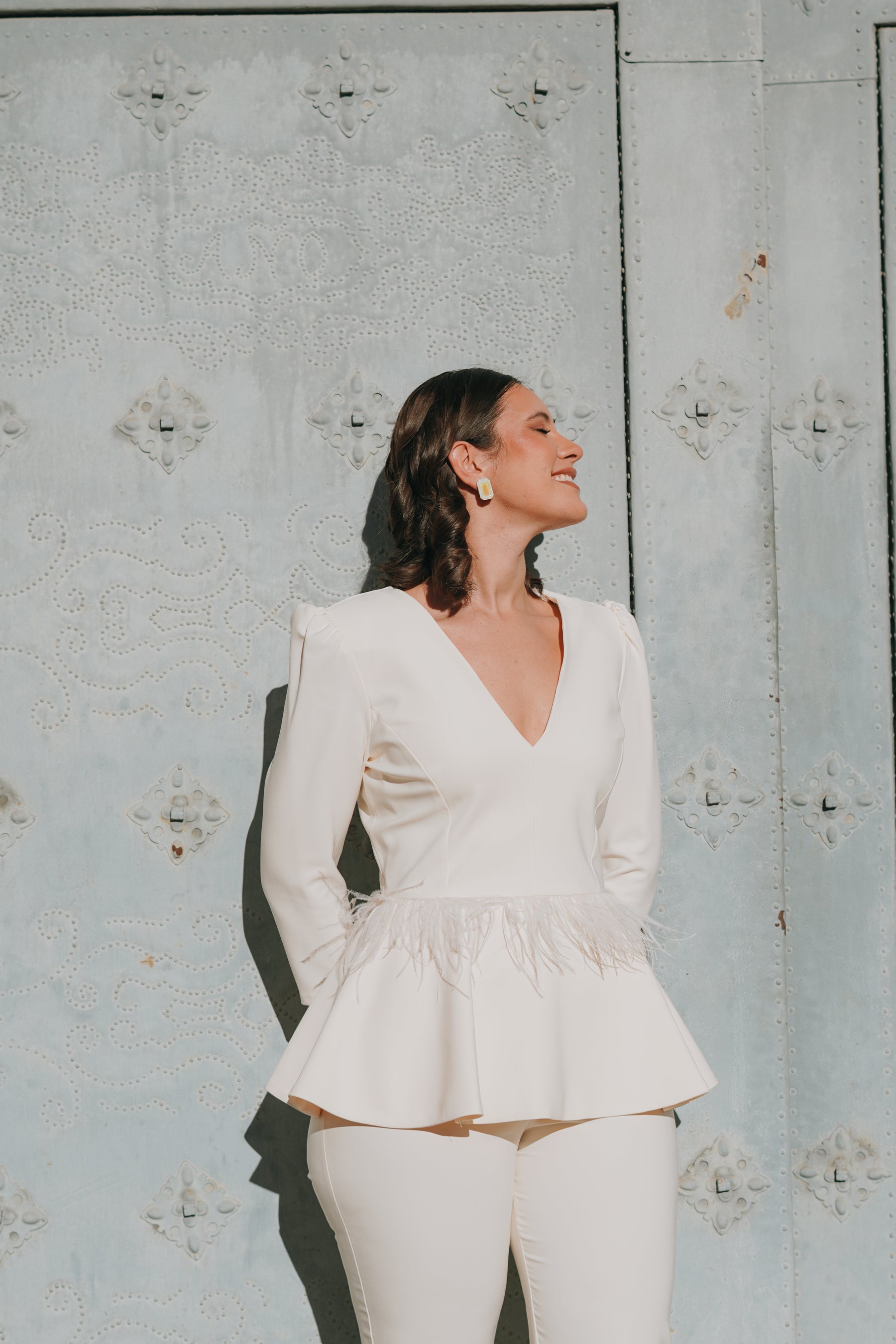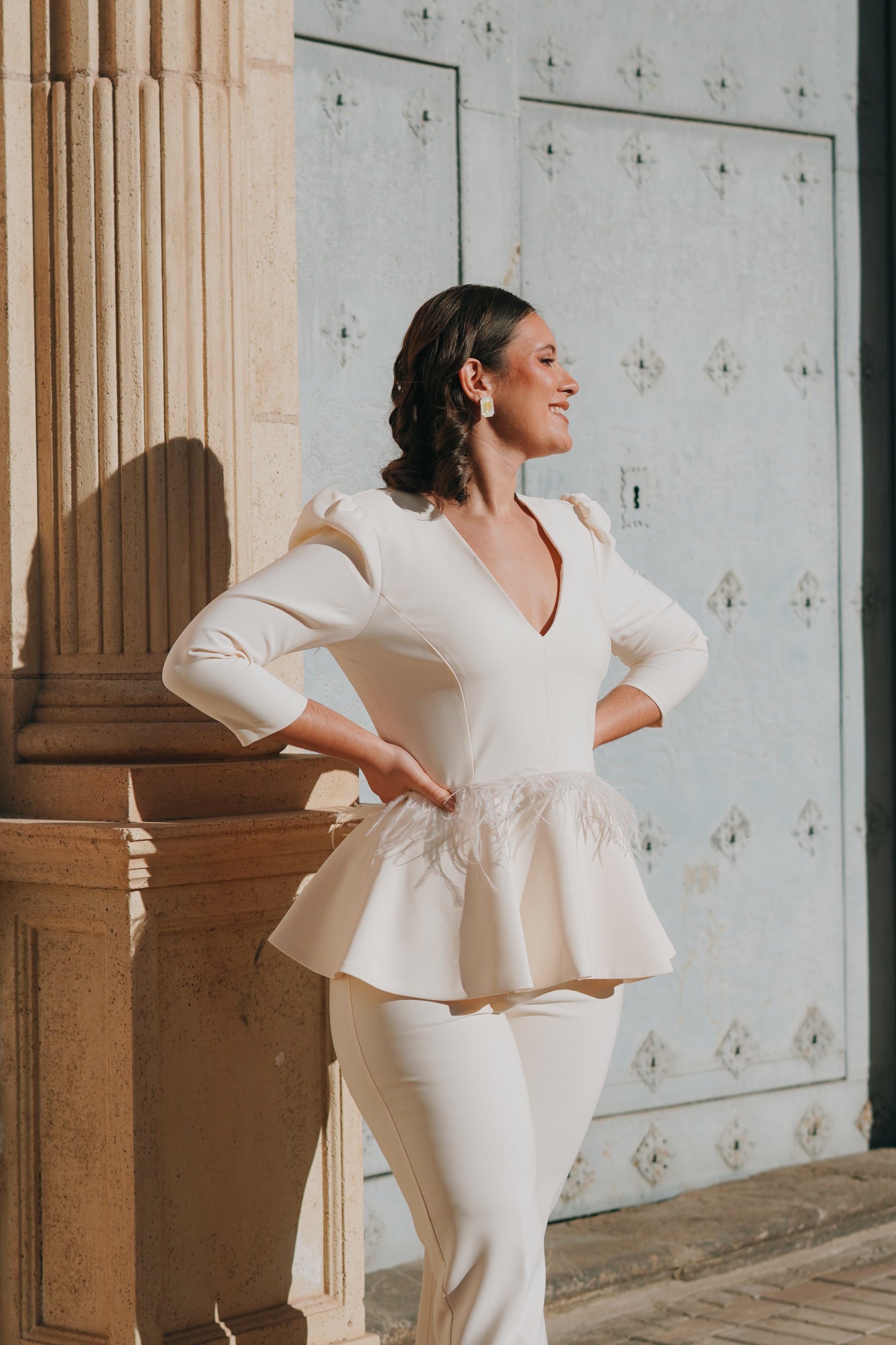 -Conjunto de dos piezas perfecto para novias que buscan un look actual y sofisticado o mamá de comunión.