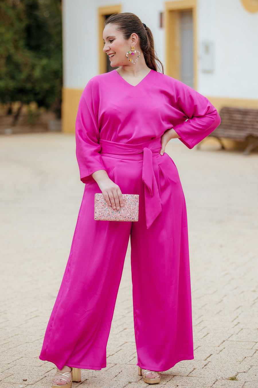 Falso cinturón como punto focal: El falso cinturón en color buganvilla se presenta como un punto focal, añadiendo interés visual al diseño. Este detalle simula la presencia de un cinturón, aportando un toque de estilo sin la necesidad de ajustes adicionales.