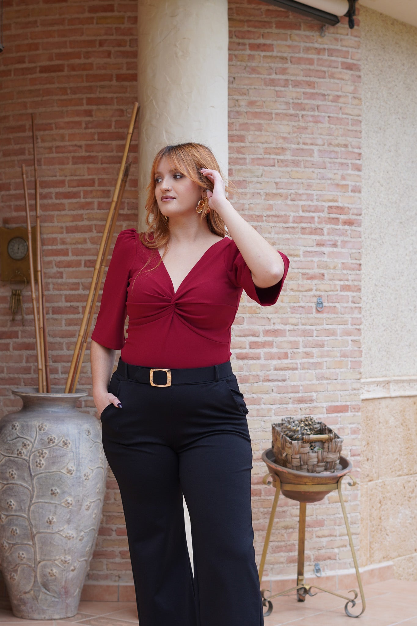 Tejido que se adapta al cuerpo perfectamente, al ser punto da talla si quieres que quede ajustado recomendamos una talla menos.