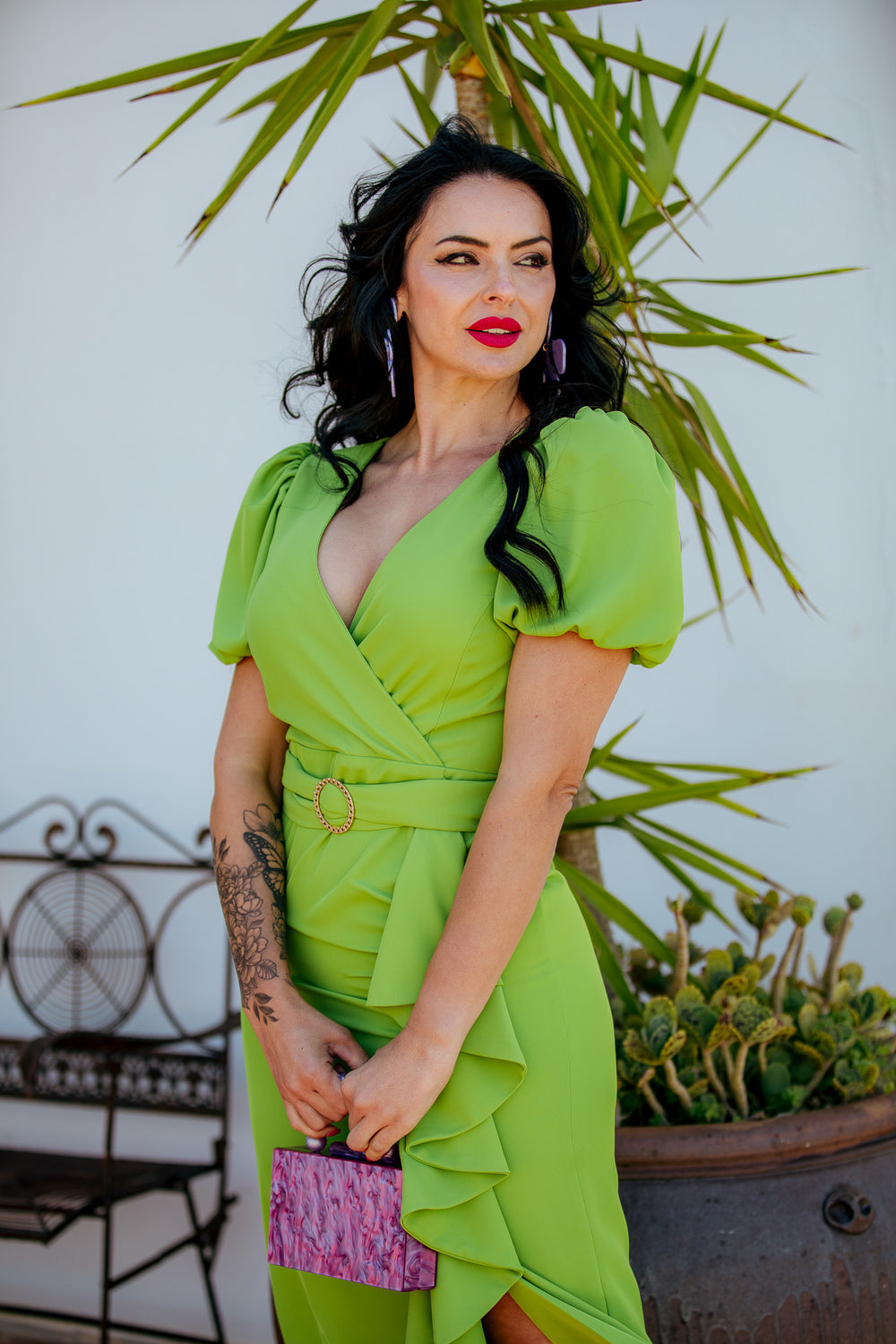Para aquelas que procuram usar um vestido para uma comunhão feminina esteticamente diferente, nada como usar um desenho com uma cor sólida como pistache air, morango air ou vermelho malte. Outro vestido tipo Guirlanda, um vestido inspirado nos anos 20, com abertura lateral e decote.