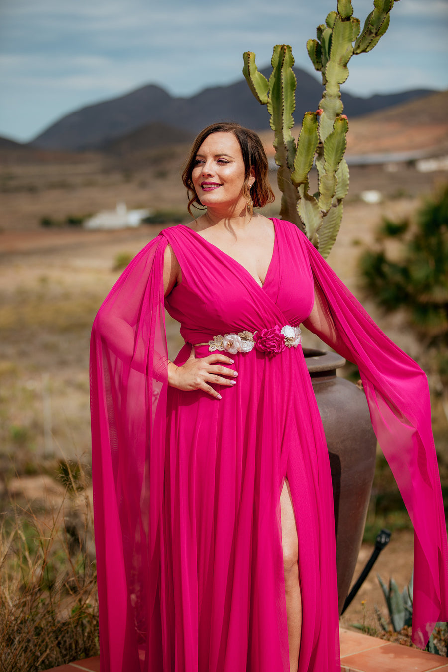 - Elegantísimo y original vestido en buganvilla.